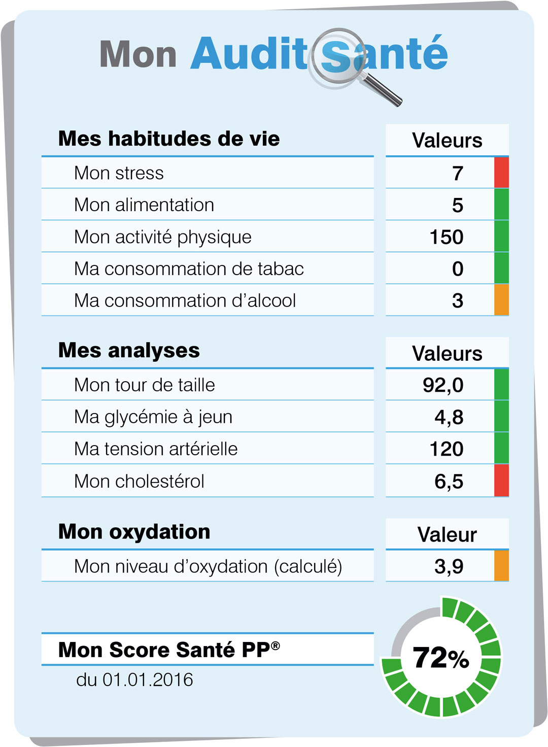 Pour optimiser les chances de succès et bénéficier de recommandations sur mesure, l’un des partenaires de la Fondation, la Pharmacie Principale, propose le questionnaire Audit Santé. Ce questionnaire permet de calculer son Score Santé individuel et de mettre en évidence ce qu’il est possible d’améliorer, grâce à un tableau de bord synthétique offert aux participants.